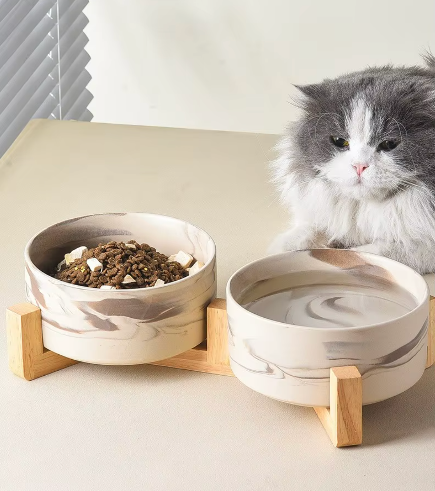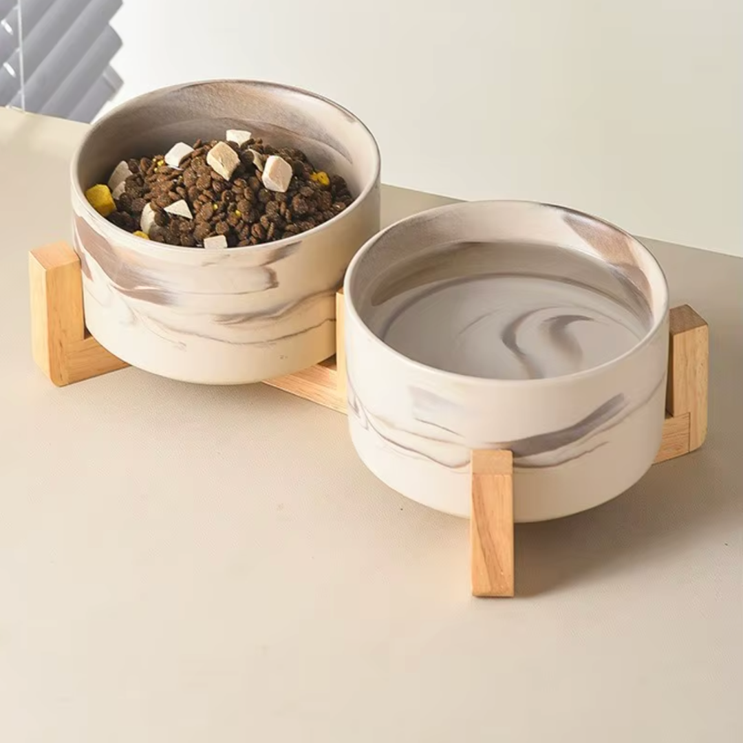 Crafted from 100% porcelain and natural wood, this durable, non-toxic bowl ensures safe and comfortable feeding for your pets.