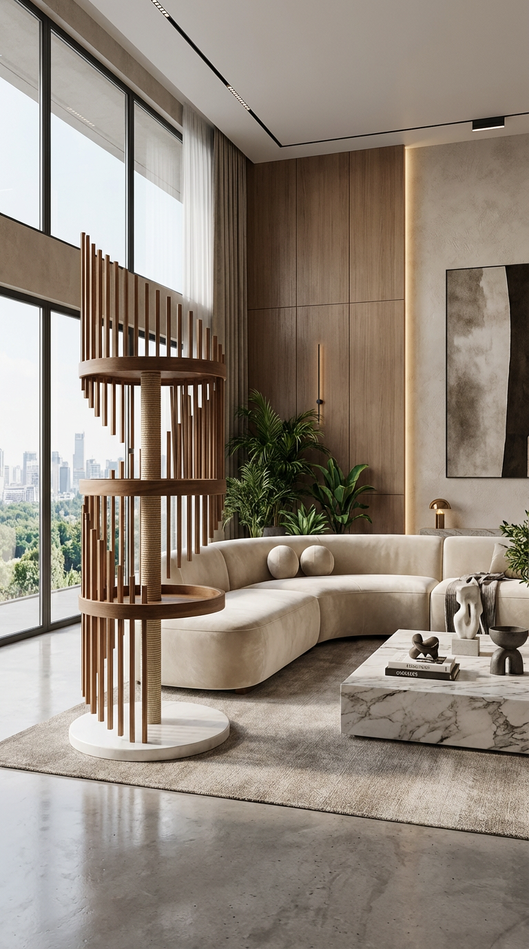 Its innovative spiral architecture maximizes vertical space within a sleek footprint, allowing cats to climb, explore, and lounge at multiple heights — all while fitting seamlessly into refined interiors.