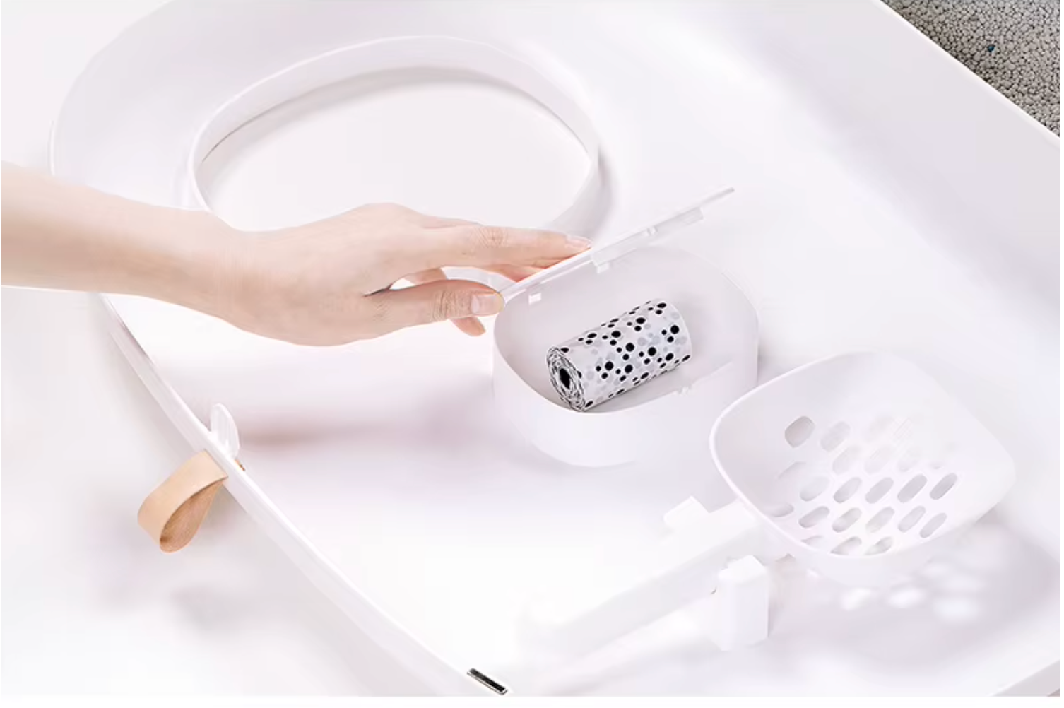 The litter box boasts a contemporary design that blends seamlessly with your home decor, making it an attractive addition to any room.
